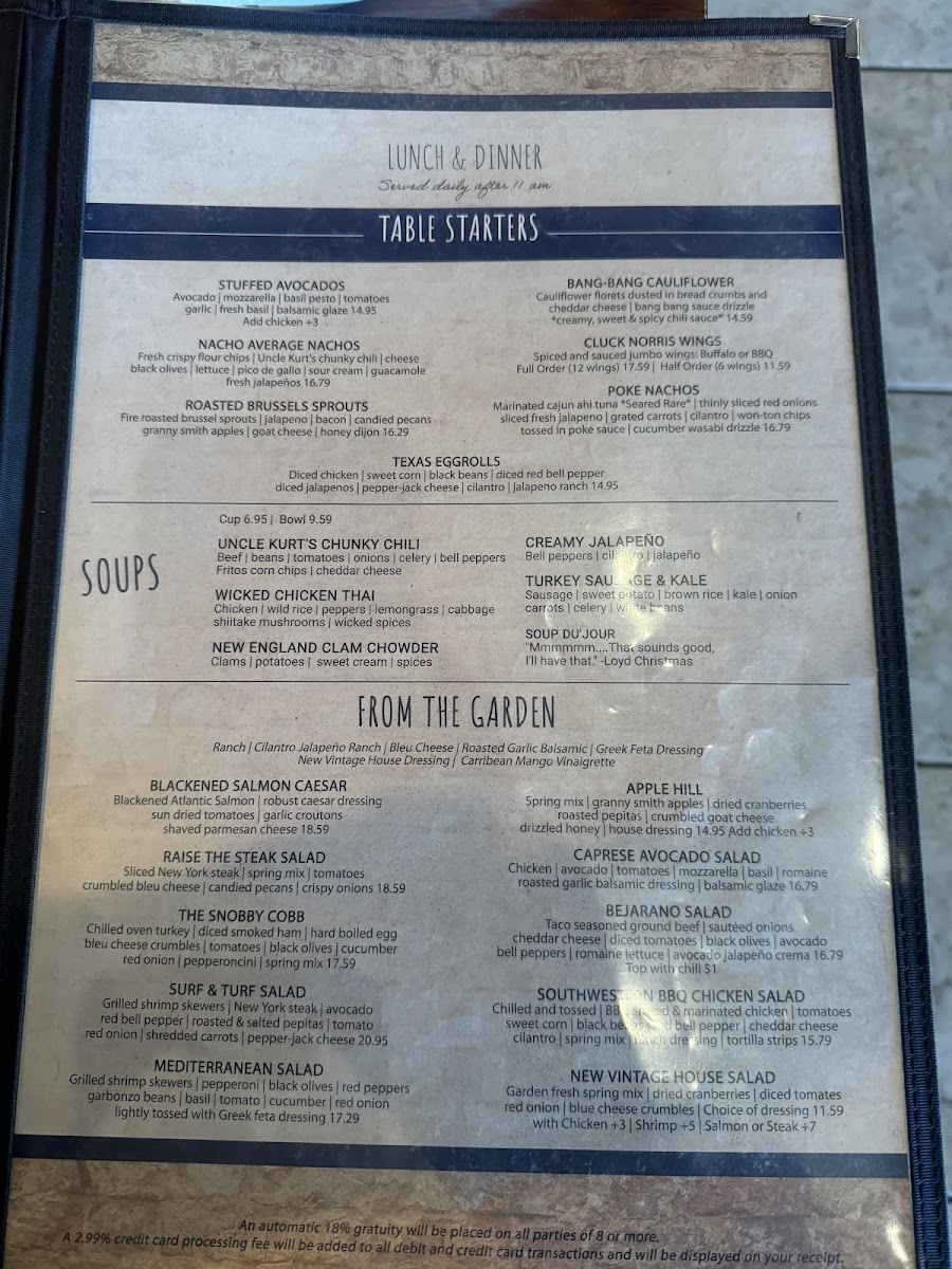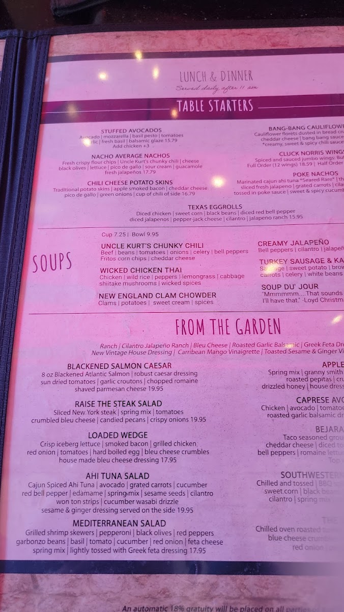Don't miss their award-winning soups, including the Turkey Sausage And Kale Soup and Wicked Chicken Thai Soup, perfect for a cozy meal. Pizza lovers will be thrilled with choices like The Godfather and Mom's Veggie Pesto, each crafted with fresh ingredients. Customers rave about large portions and reasonable prices, making it an ideal spot for gatherings. With friendly service and a vibrant atmosphere, New Vintage Grill is a must-visit for food enthusiasts!